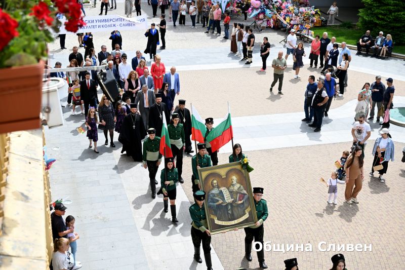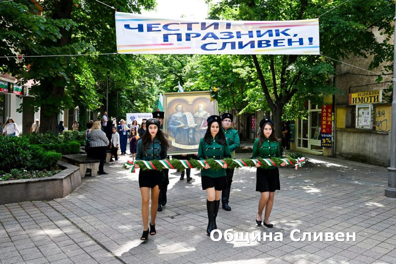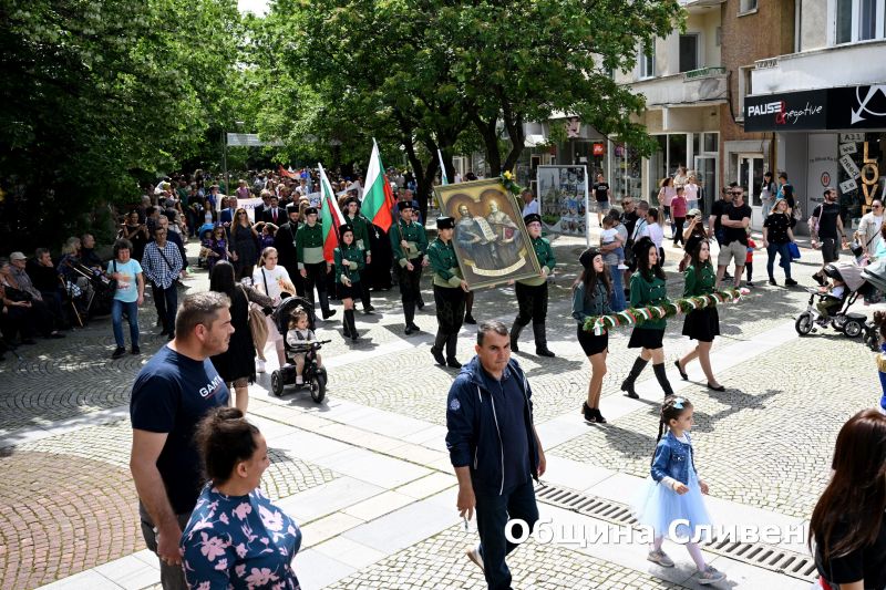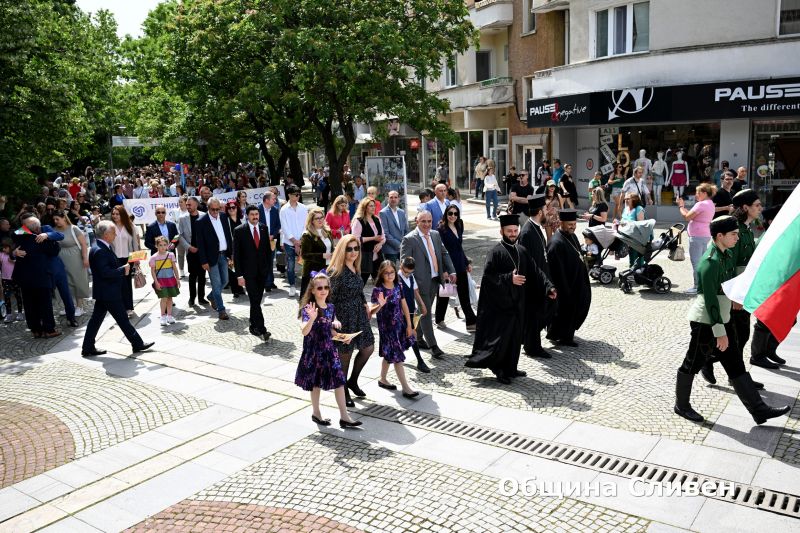 С тържествено шествие на деца, ученици, студенти и културни деятели от сливенските градини, училища, висши учебни заведения и културни институти започна празничният 24 май в Сливен. То премина от Градската градина по булевард „Цар Освободител“ и достигна до площад „Хаджи Димитър“, който се изпълни с малки и големи жители и гости на града. Всички заедно, усмихнати и обединени, отбелязаха Деня на светите братя Кирил и Методий, на българската азбука, просвета и култура и на славянската книжовност.
