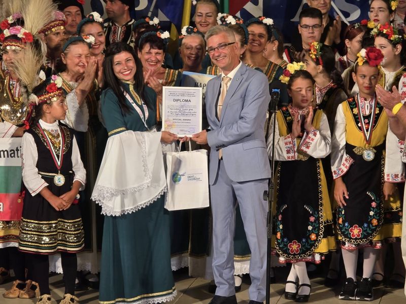 Г-жа Захариева изрази дълбокото си признание и благодарност към групата и тяхната ръководителка за вдъхновяващото им представяне, с което прославят Нова Загора на световната сцена.