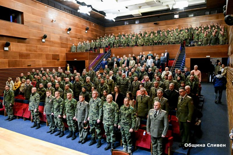 Честването в зала „Сливен“ уважиха областният управител Чавдар Божурски, председателят на Общински съвет - Димитър Митев и общински съветници, заместник-командирът на Сухопътните войски бригаден генерал Пламен Йорданов, зам.-кметът Пепа Чиликова, духовният надзорник на Сливенска епархия - свещеноиконом Йоан Петров, офицери от запаса, бивши и настоящи командири на военните формирования, началници, директори и представители на институции и организации в Сливен.