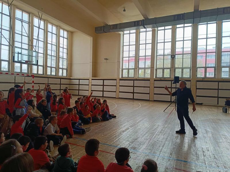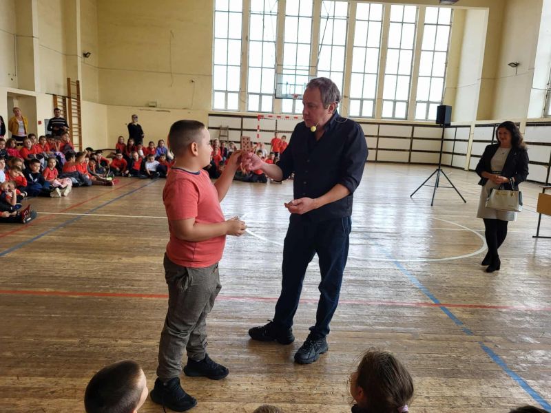 Днес малките ученици от първи и втори клас имаха вълнуваща среща с популярния актьор и илюзионист Ненчо Илчев. Спектакълът се проведе във физкултурния салон, където децата посрещнаха госта с огромен интерес и бурни аплодисменти. Комикът демонстрира част от впечатляващите си илюзии. С много хумор, чар и магия той успя да завладее вниманието на ученици и учители и да предизвика безброй усмивки. Учениците се включиха с огромен ентусиазъм – аплодисменти и много смях изпълниха залата. Някои дори имаха възможността да станат негови помощници във фокусите. Срещата завърши с бурни аплодисменти и множество снимки. Учениците дълго ще помнят тази незабравима среща, изпълнена с усмивки, изненади и... магия!