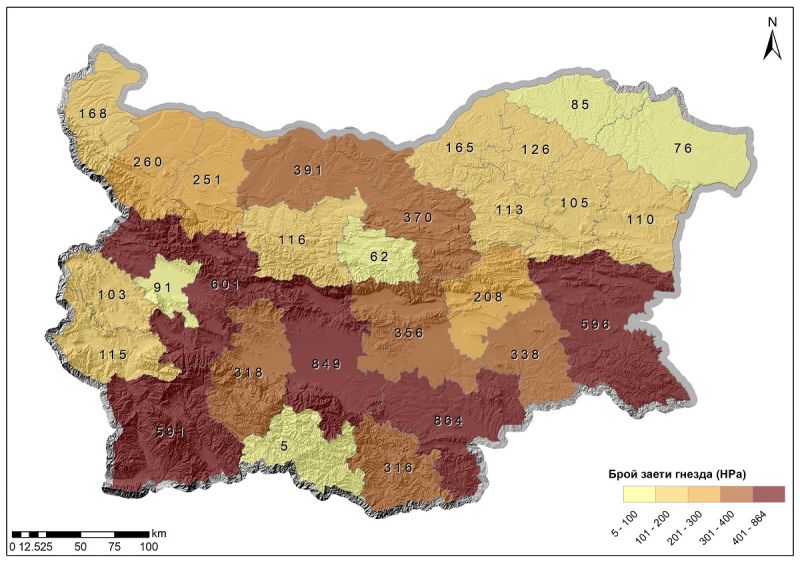 Най-предпочитаното място за свиване на гнезда продължават да бъдат електрическите стълбове – цели 8339 гнезда са разположени върху тях. 76 гнезда са разположени на дървета, като най-често се използват акацията, бора, черницата и тополата. За сравнение преди десет години техният брой е бил 201. Върху сгради са разположени 539 гнезда, като най-често използваните са покриви и комини на училища, фурни, частни къщи, както и куполи на църкви. Регистрирани са гнезда и върху друг вид субстрат – силози, паметници, магазини, GSM антени и изкуствени постройки, изградени от човек. Радващ е фактът, че драстично се е увеличил броят на гнездата, които са повдигнати върху изкуствени платформи – 5620. БДЗП от години работи съвместно с електроразпределителните дружества в страната, на които ще бъдат предоставени данните за рисковите щъркелови гнезда, за да бъдат и те обезопасени на изкуствени платформи в бъдеще.