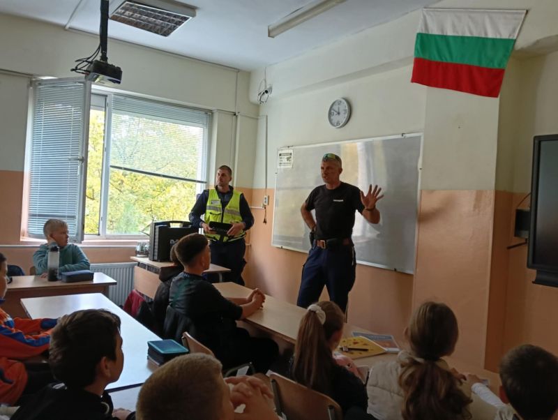 Днес на шестокласниците гостуваха младши автоконтрольорите в сектор „Пътна полиция” – Сливен Стойчев и Вичев.