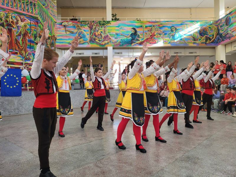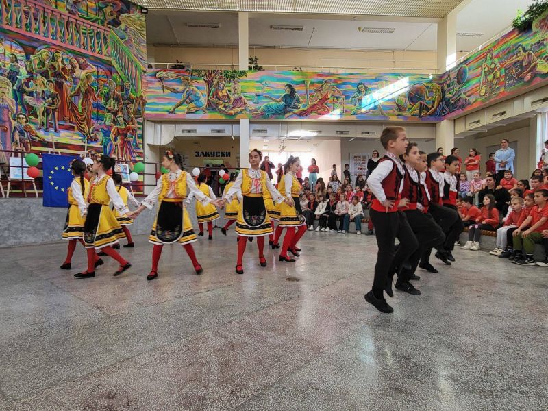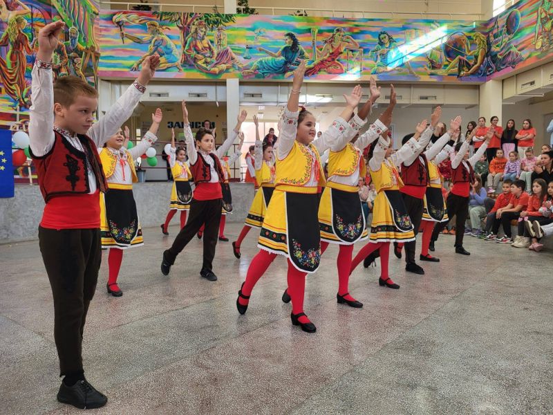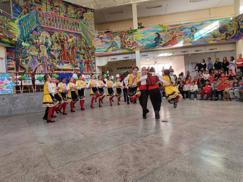 В голямото междучасие днес училищният форум се превърна в истинска фолклорна сцена – зазвучаха народни песни, а учениците от танцов състав „Детелина“ към ОУ „Елисавета Багряна“ изпълниха танц и поведоха народно хоро.