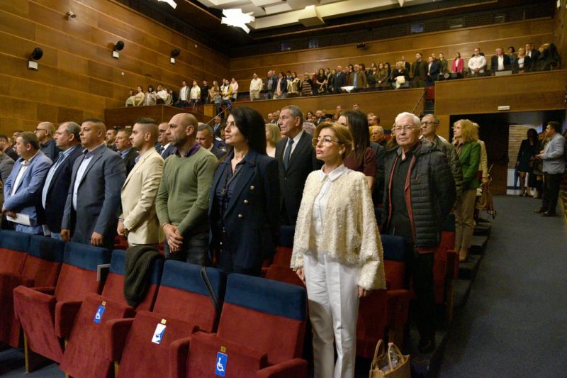 Своите поздравления за празника отправиха от сцената в залата сливенският митрополит Арсений и областният управител Чавдар Божурски.