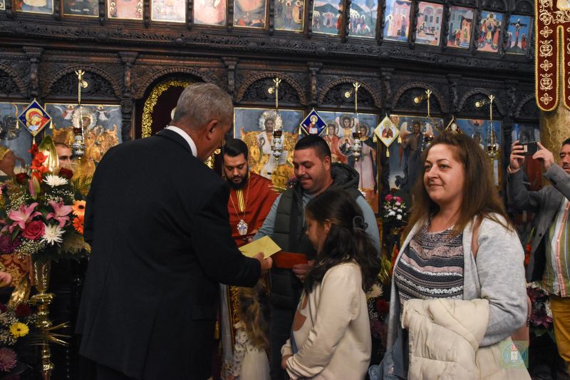 След празничната архиерейска св. Литургия в катедралния храм „Св. вмчк Димитър Солунски“ в гр. Сливен, архипастирят връчи материална помощ и подаръци на четири многодетни семейства от града и околностите.