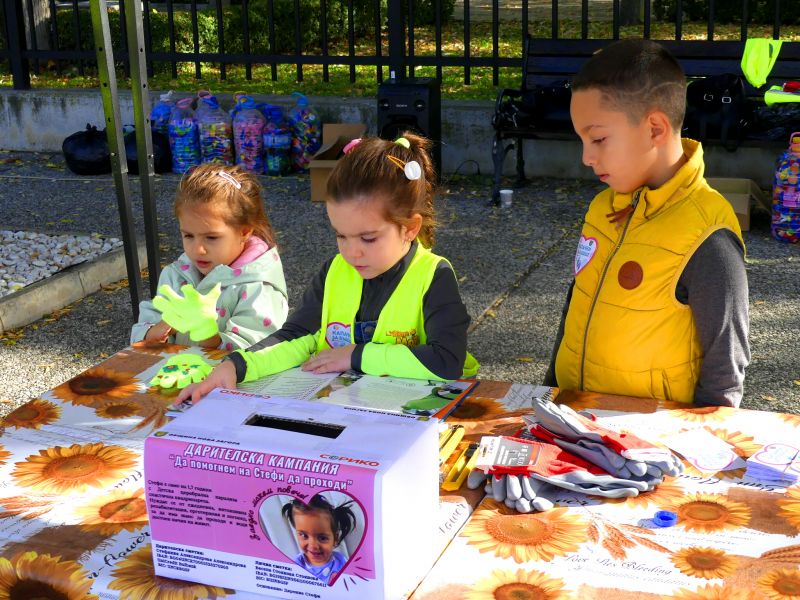 Тази есен кампанията имаше специална благотворителна цел – подкрепа за 1,7-годишната Стефания Александрова Александрова, страдаща от детска церебрална парализа – спастична квадрипареза. На място бе поставена кутия за дарения, чрез която бяха събрани средства за нейното лечение и рехабилитация.