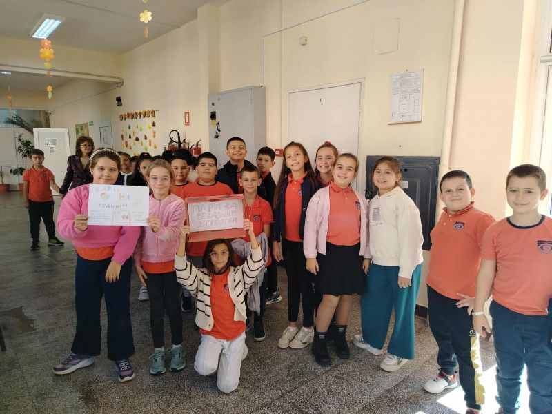 Учениците от 3. „А“ клас организираха благотворителна инициатива в помощ на бездомни животни. Те лично събраха средства, с които закупиха храна и я оставиха на няколко места край училището, където животните често намират подслон.