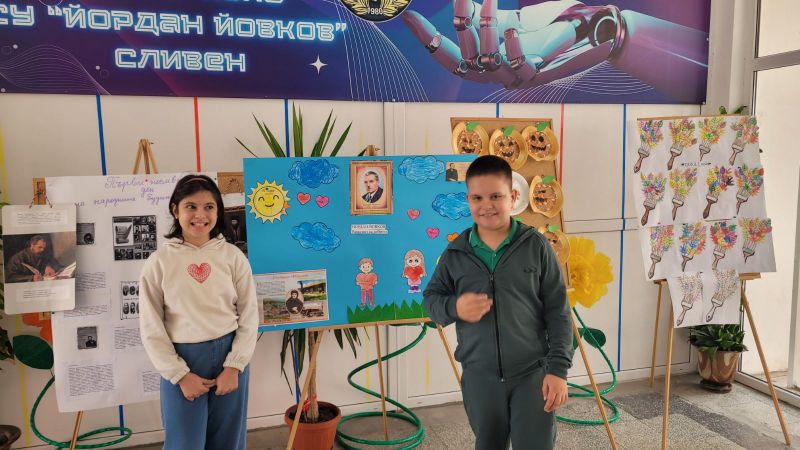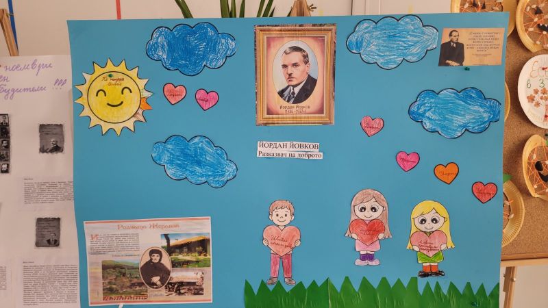 В седмицата на патронния празник на училището учениците създадоха колаж в арт-зоната „Светът на Йовков през моите очи“.