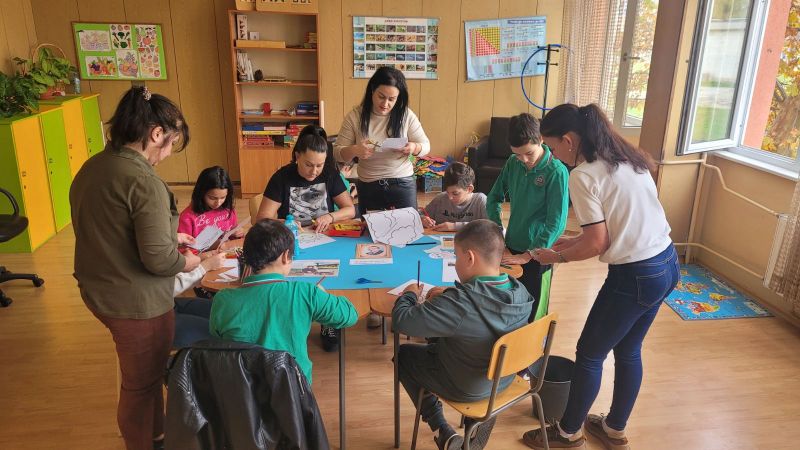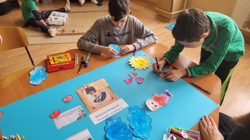 Учениците, работещи с екипа за подкрепа на личностното развитие, твориха в ресурсния кабинет. С много вдъхновение и въображение те представиха своя поглед към света на Йордан Йовков.