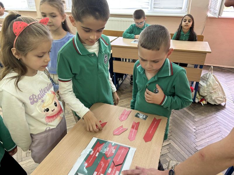 С много вълнение и усмивки учениците от първи клас се потопиха в магията на творчеството на своя патрон, участвайки в дидактичната игра лото „Светът на Йовков“. Под грижовното ръководство на г-жа Марияна Стоянова – логопед в училището, и с подкрепата на своя класен ръководител г-жа Събина Кутрова, малките откриватели направиха първите си стъпки в чудния свят на думите, героите и приятелството.