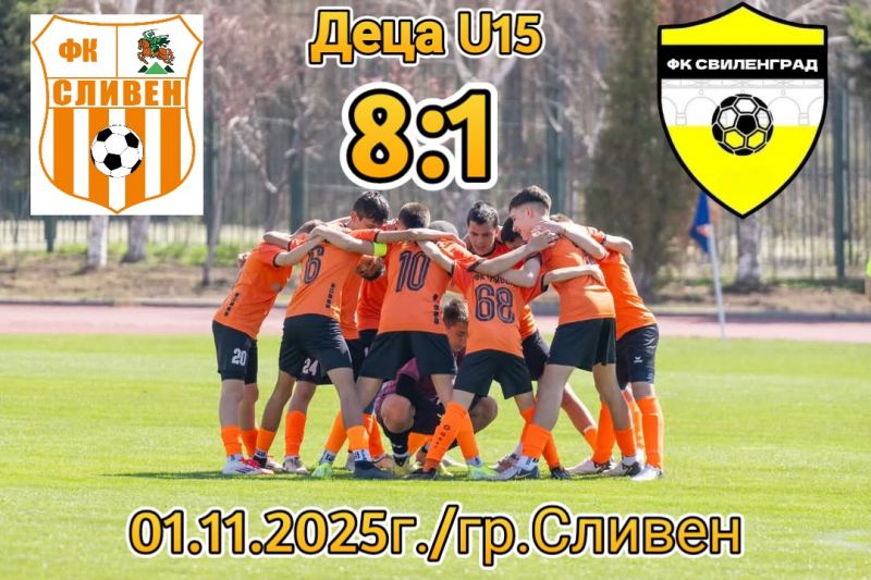 Децата на ФК "Сливен" до 15г. постигнаха забележителна победа с 8:1 над връстниците си от ФК "Свиленград".