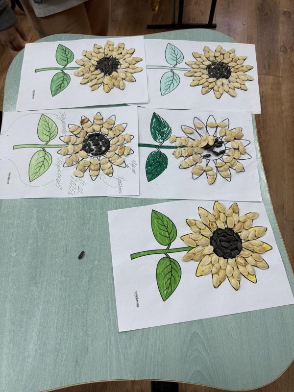 Учениците от 3. и 4. клас под ръководството на своя учител Борислава Узунова превърнаха деня в празник на творчеството. Те изработиха апликации на слънчогледи, като използваха истински слънчогледови и тиквени семена. Докато творяха, децата се учеха на търпение, естетика и любов към природата. Резултатът — красиви и пъстри слънчогледи, които грейват с детската усмивка.