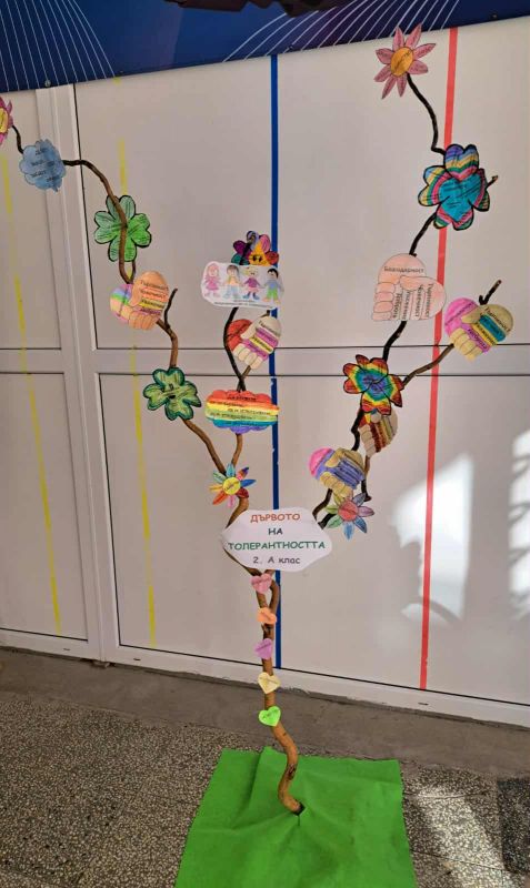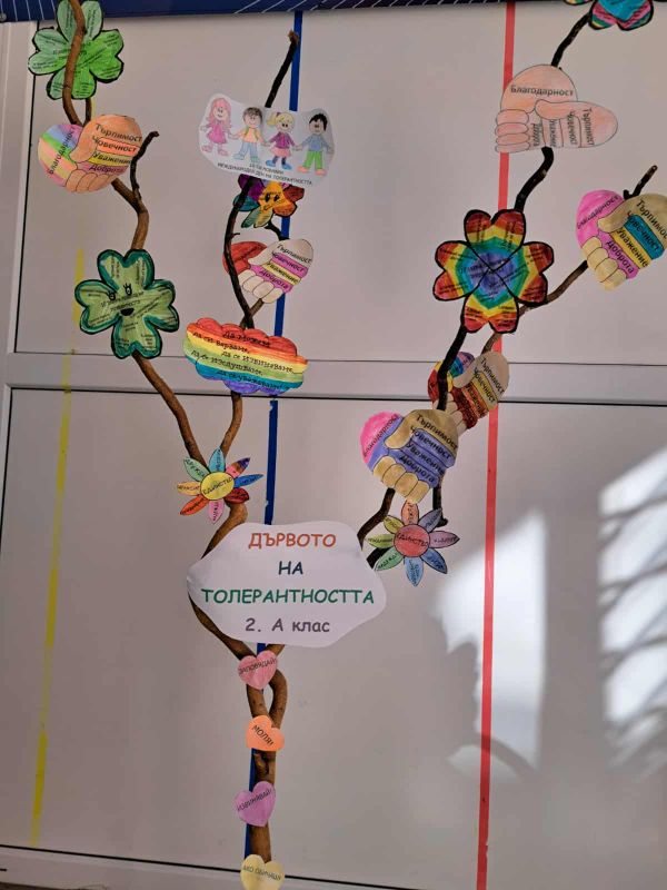В уютната атмосфера на класната стая децата си припомниха какво означава да бъдеш толерантен – да уважаваш различията, да бъдеш добър приятел и да помагаш на другите. Вдъхновени от тези ценности, те създадоха своето „Дърво на толерантността“, което украсиха с цветни листа и цветя, върху които написаха думи и послания, свързани с доброта, приятелство и разбиране.