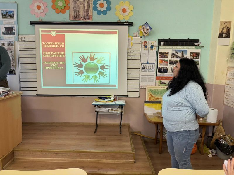 Учениците активно участваха в дискусията и демонстрираха разбиране, че макар да сме различни, всички сме равни и трябва да се отнасяме с уважение и търпимост един към друг. Кулминацията на урока беше практическата задача – изработване на собствени книжки, посветени на толерантността!
