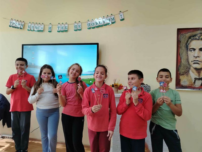 Третокласниците от ОУ "Елисавета Багряна" работиха по тема, свързана с безопасността на движението по пътищата. Децата изработиха свои пътни знаци от хартия, като се запознаха с тяхното значение и роля в пътната безопасност. Научиха разликите между предупредителни, забранителни и задължителни знаци.