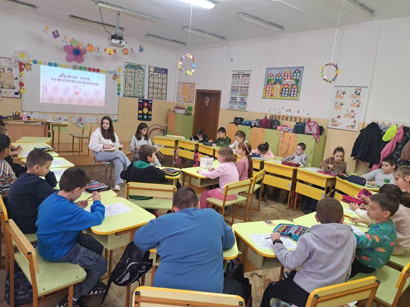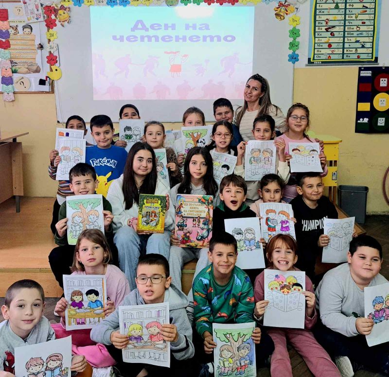 На 21 ноември учениците от 2.А клас с класен ръководител Таня Чотова отбелязаха Деня на четенето по един специален начин. В тяхната класна стая гостуваха Габриела Жечева от 8.А клас и Ева Гуиди от 6.А клас – по-големи сестри на деца от класа. Те споделиха своята любов към книгите, като прочетоха любими приказки пред второкласниците.