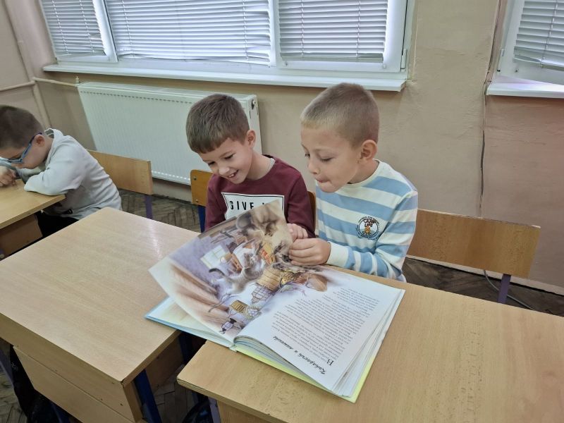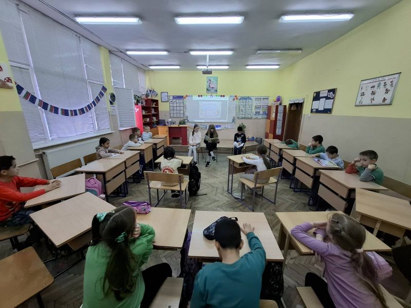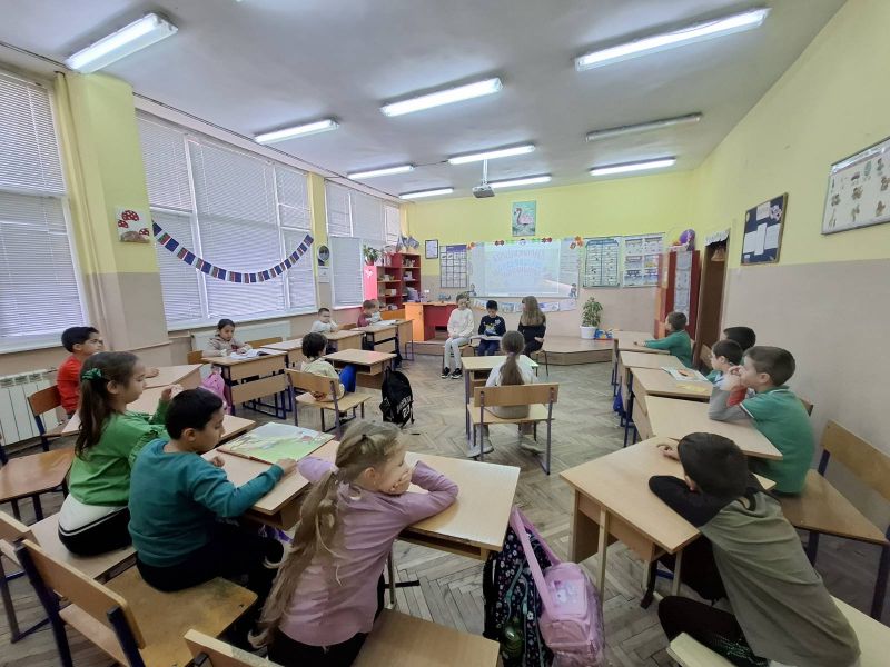Първокласниците, заедно със своя класен ръководител г-жа Събина Кутрова, посрещнаха специални гости – Мадлен Георгиева, Симона Куманова и Стефан Петров от 5.А клас. Те донесоха със себе си не просто книги, а любими приказки, разказани с много обич и вдъхновяваща емоция.