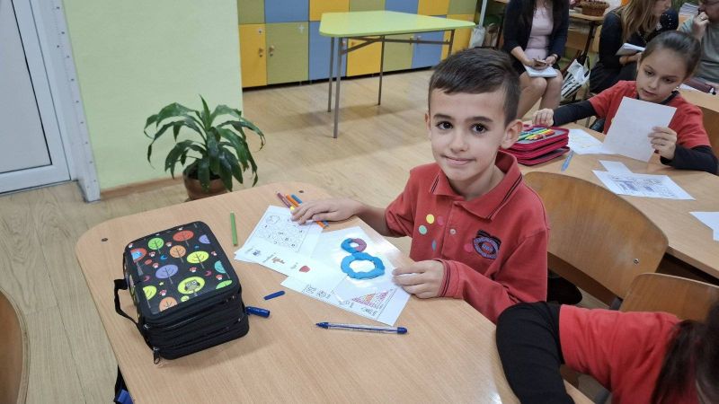Днес – 27.11.2025г., с учениците от 2. „в“ клас г-жа Мери Божкова проведе урок по английски език на тема „Alphabet, numbers and colours“, реализиран чрез метода „учене по станции в пет стъпки“.