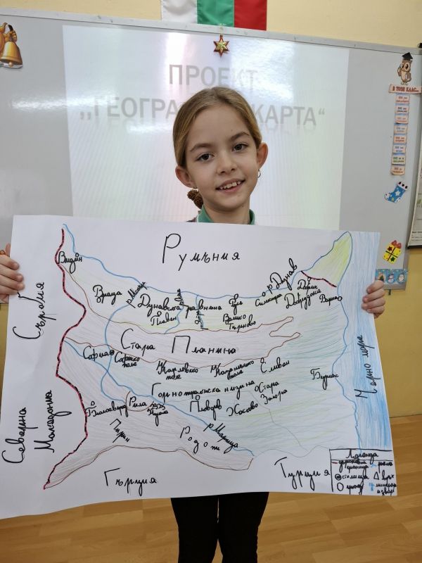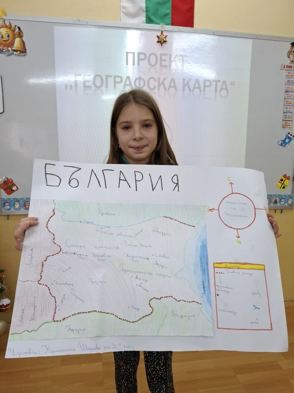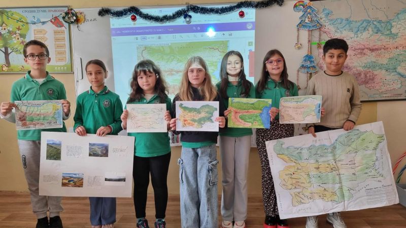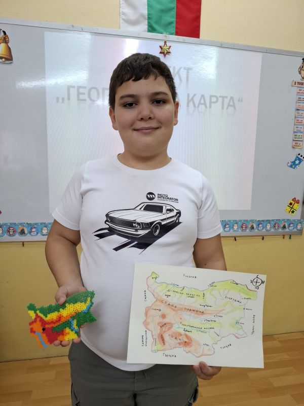 Учениците от 3. клас, заедно със своите родители, се впуснаха в истинско творческо пътешествие, за да създадат своя месечен проект – „Географска карта на България“. В техните домове в продължение на седмици кипеше работа: цветни моливи рисуваха планини, реки и градове, ножички и лепила оформяха релефи, а малките изследователи с любопитство откриваха нови кътчета от родината ни.