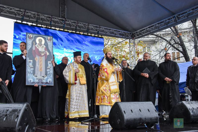 Негово Високопреосвещенство митрополит Арсений поздрави кмета на града г-н Димитър Николов, областния управител г-н Владимир Крумов, представителите на местната власт и всички събрани граждани с празника на свети Николай, покровителя на Бургас. Протодякон Александър Нешев възгласи многолетствие за здраве, мир и благоденствие на града и неговите жители.