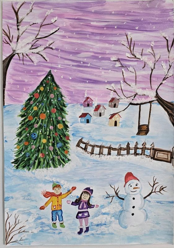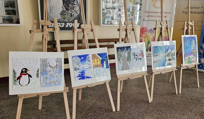 В изложбата бяха представени художествени творби, вдъхновени от зимния сезон – снежни пейзажи, зимни игри, празнични моменти . Учениците вложиха въображение, настроение и усет към цветовете, като показаха своите творчески умения и индивидуален поглед към темата.