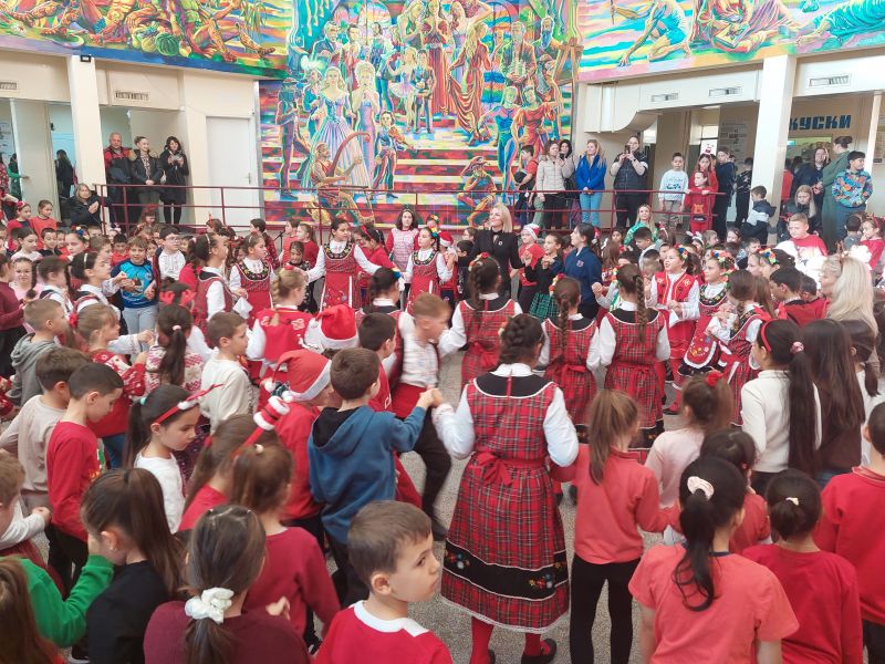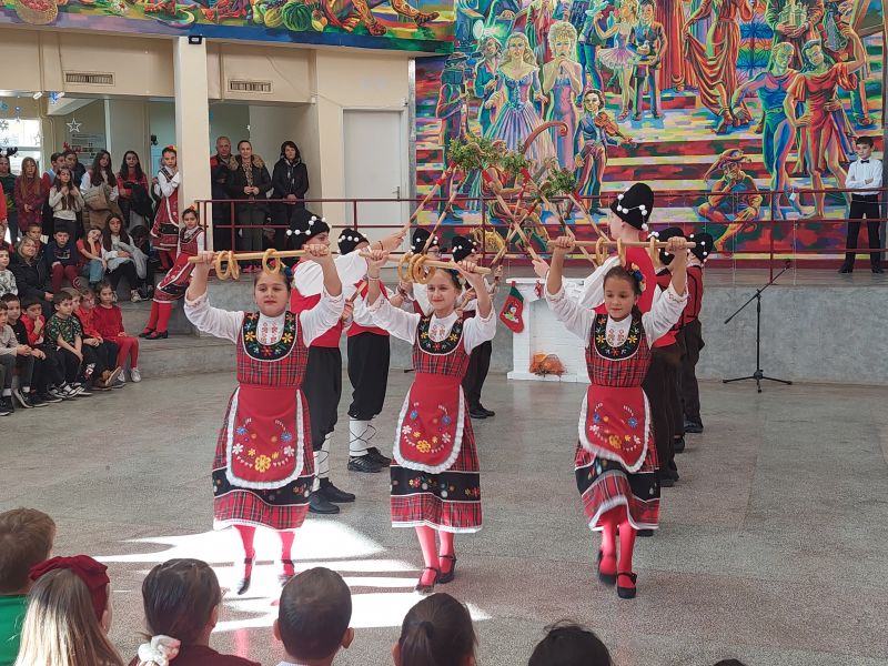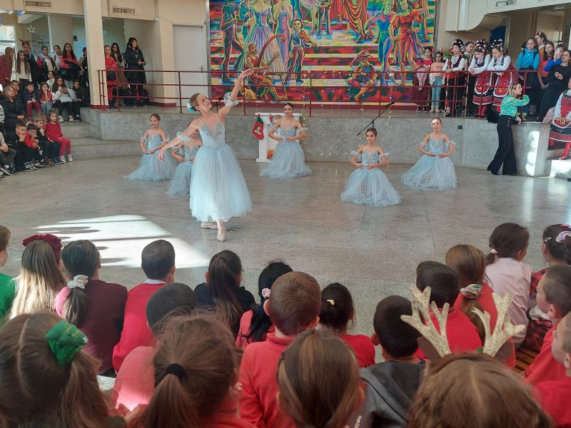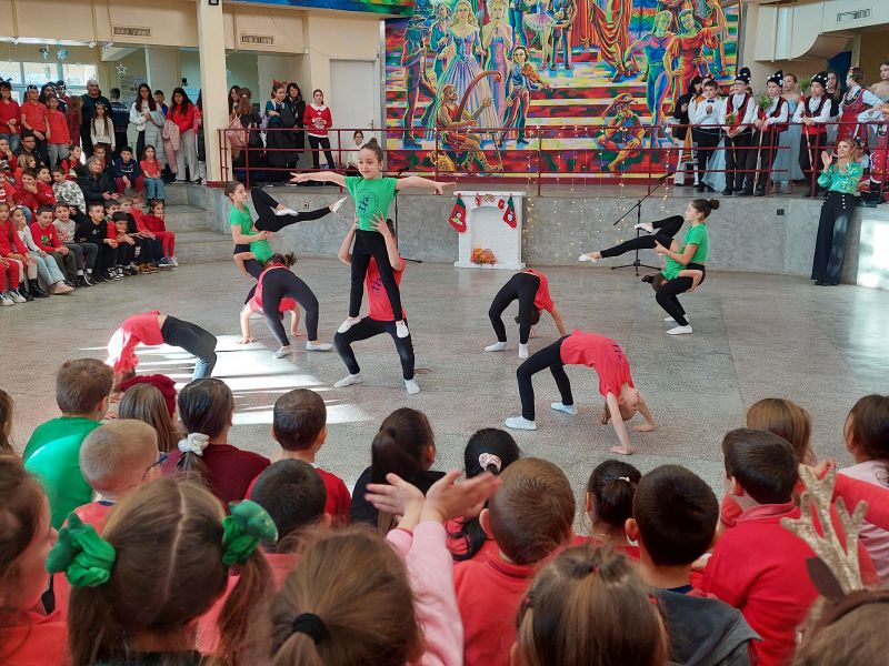 На сцената се изявиха ученици от различни класове с песни, танцови и музикални изпълнения. Публиката се наслади на празнични и коледни песни, впечатляващи народни танци, елегантни спортни танци, както и на традиционни коледни наричания.