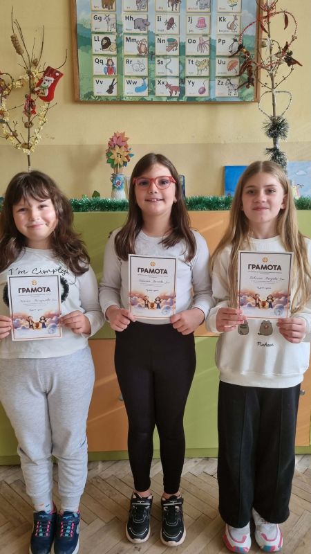 Поздравления за учениците от 1. до 4. клас, които се представиха отлично в състезанието „Аз зная и умея“, организирано от Сдружението на българските начални учители. Със своите знания, умения и увереност те показаха, че любопитството и стремежът към успех вървят ръка за ръка още от най-ранна възраст.
