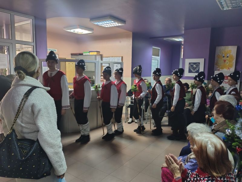 Танцов състав „Детелина“ от ОУ "Елисавета Багряна" с ръководител Магдалена Луканова дари радост и топлина на потребителите в Дома за стари хора, като с коледарски танц им пожела весела Коледа и здраве. Усмивките и сълзите от радост в очите на възрастните хора бяха най-истинското доказателство, че традициите носят утеха, надежда и обич.