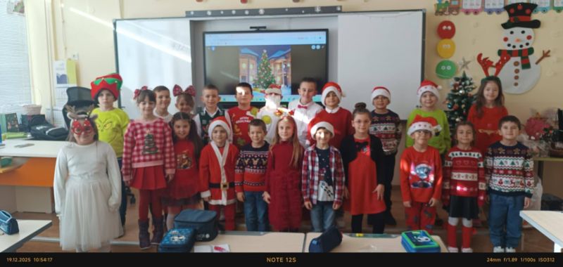 В продължение на цяла седмица учениците бяха без униформи, облечени в коледни костюми, цветове и усмивки. Коридорите и класните стаи грейнаха в празнична атмосфера, а училището оживя с радост, настроение и творчество.