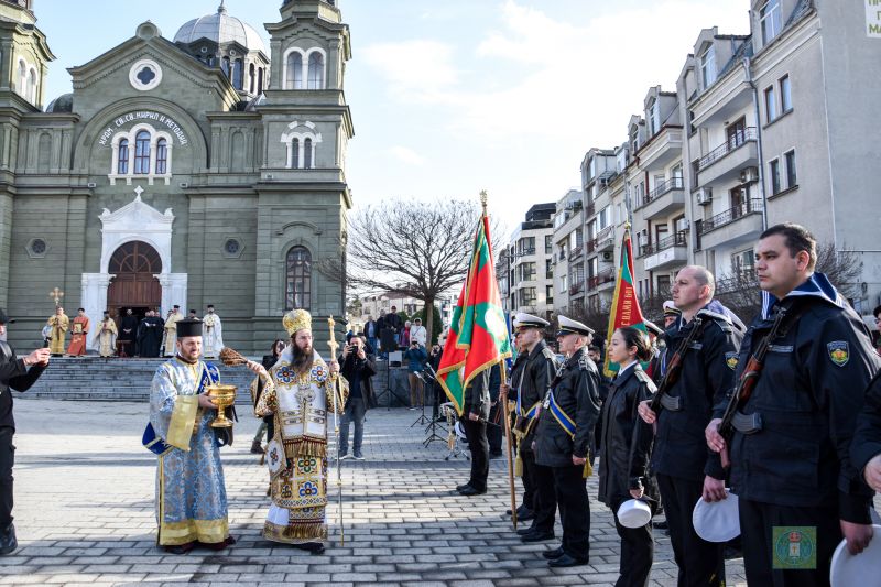 След извършването на Великия богоявленски водосвет, пред катедралния храм „Св. св. Кирил и Методий“ в гр. Бургас бяха тържествено осветени бойните знамена на формированията от Българската армия и Военноморските сили в региона.