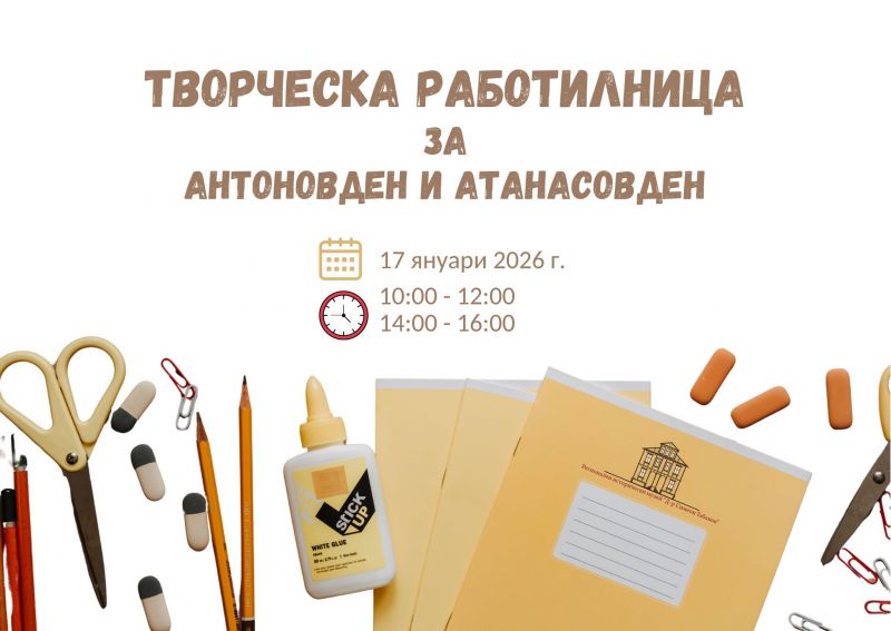 Регионален исторически музей "Д-р Симеон Табаков" – Сливен кани всички деца на първата творческа работилница за годината, посветена на Антоновден и Атанасовден – дните, в които почитаме здравето, добротата и силата на човешкия дух.