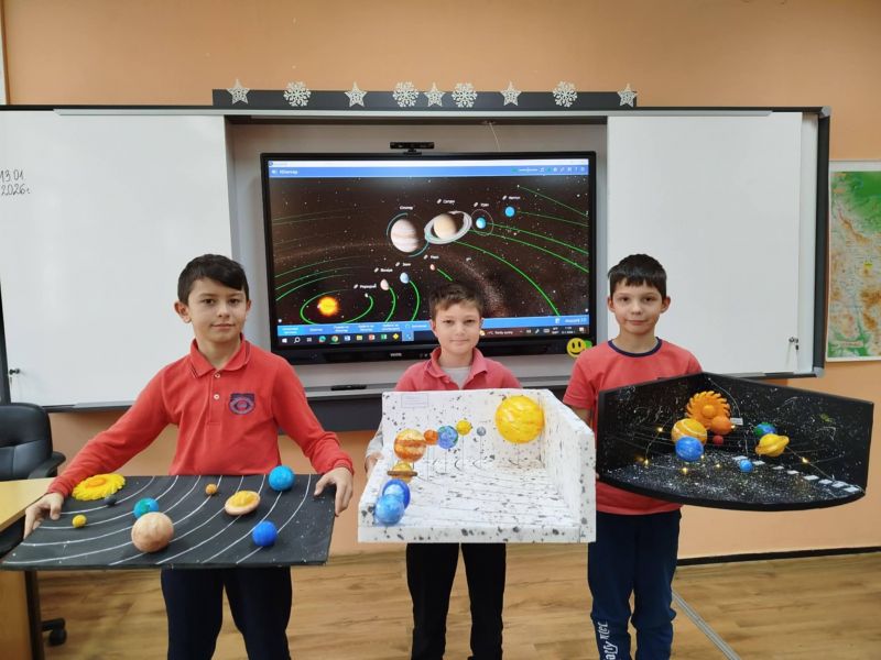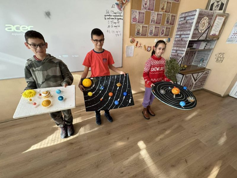 С много въображение, сръчност и любопитство децата „построиха“ планети от картон, пластилин, топки стиропор, прежда, 3D конструкции, рециклирани материали и дори светлини. Всяка Слънчева система беше уникална – с въртящи се орбити, ярки цветове и интересни факти, разказани от учениците в часовете по "Човекът и природата".