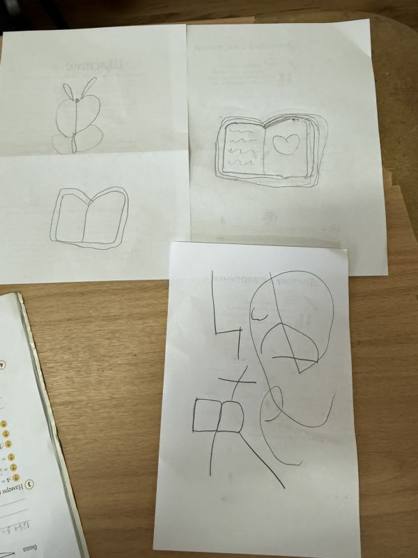 Те се подредиха в редици, като всеки постави лист на гърба на другарчето пред себе си. Предизвикателството беше голямо: последното дете започва да рисува, а детето пред него трябва да „разчете“ движението на молива по гърба си и да пренесе същото изображение върху своя лист.