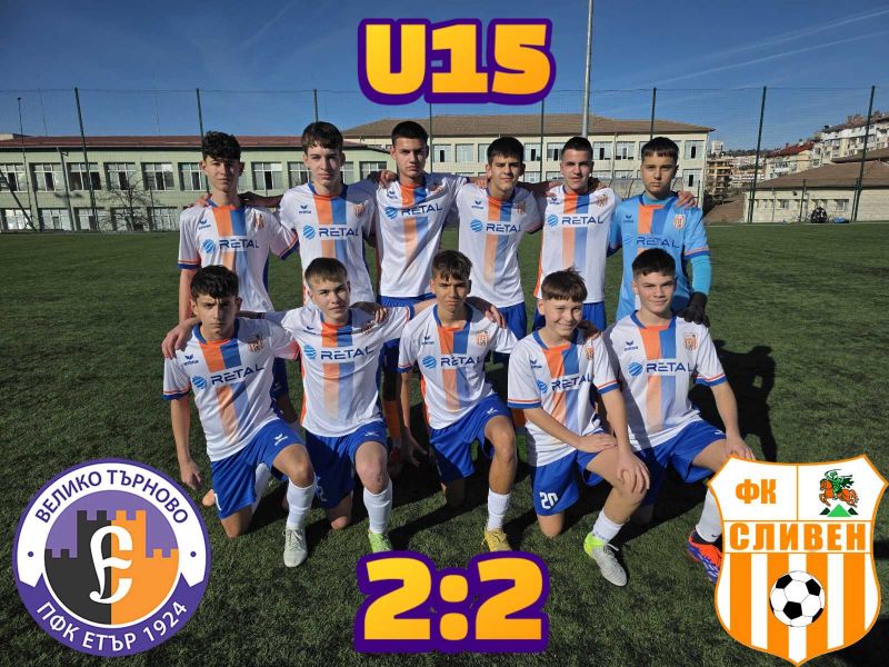 Юношите на ФК "Сливен" до 15 години показаха характер и добра игра, след като наваксаха два гола пасив и завършиха 2:2 при гостуването си на ПФК "Етър 1924" Велико Търново U15, който е част от Елитната група.