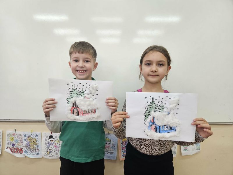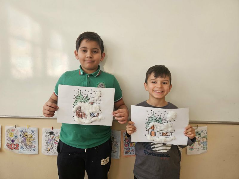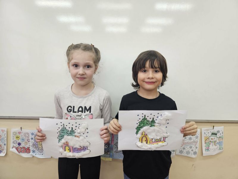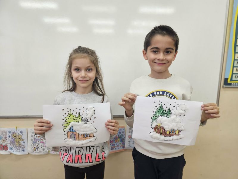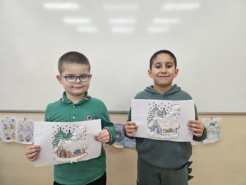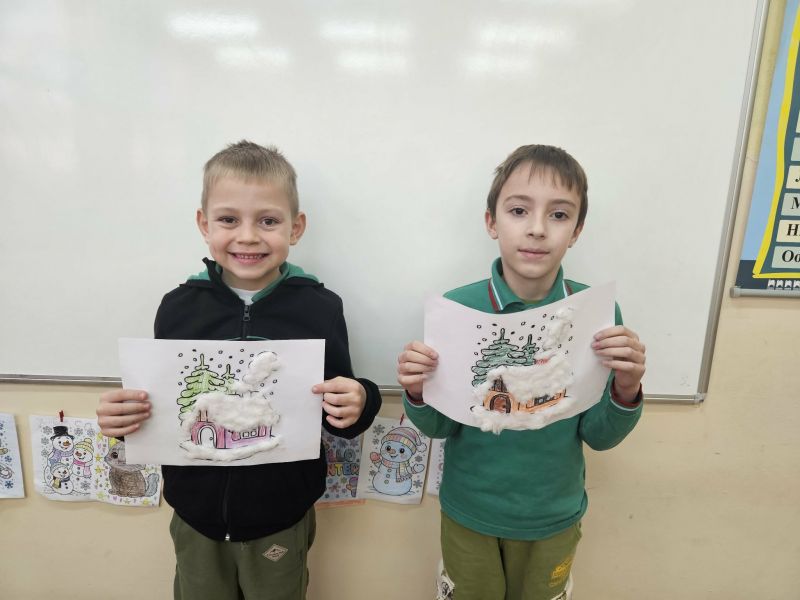 Учениците от група за ЦОУД – 1. клас, с учител Пламена Кирова, превърнаха следобедните занимания по интереси в истинска зимна приказка. С много ентусиазъм, въображение и вдъхновение децата създадоха красива картина от памук, която впечатлява със своята нежност и оригиналност.