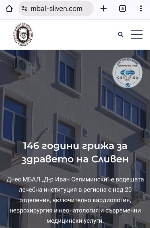 МБАЛ „Д-р Иван Селимински-Сливен“ има нов сайт, с модерна визия. Линкът, който води към него е - https://mbal-sliven.com/. Старият сайт все още функционира, но има препратка към новия. Той е направен така, че да върши най-важното за един институционален уебсайт - да дава ясна, пълна и добре подредена информация, която се намира лесно. Посетителите могат бързо да се ориентират в структурата на болницата, дейностите, полезните контакти и актуалните съобщения, като съдържанието е организирано логично и четимо.