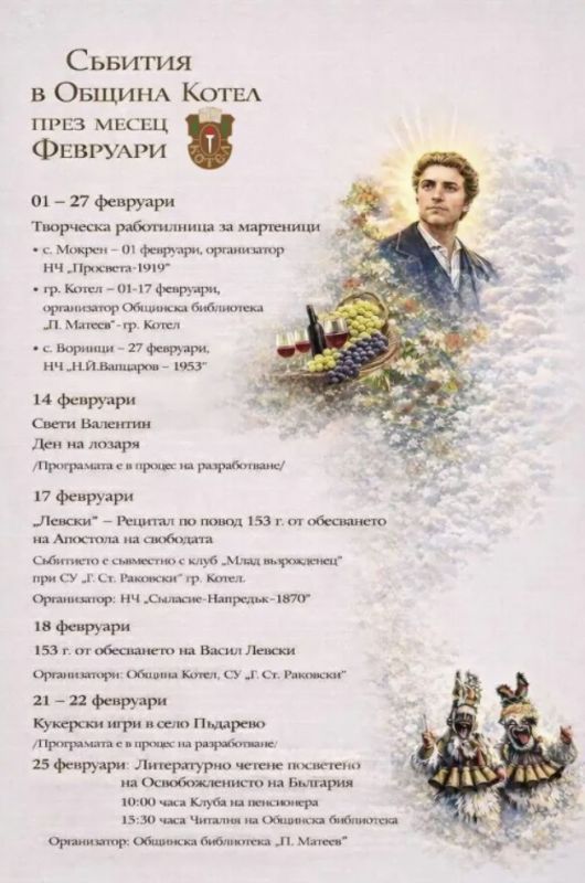 През месец февруари Община Котел, съвместно с местните културни институции, реализира богата и разнообразна програма от събития, посветени на българските традиции, празници и историческа памет.