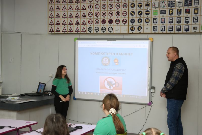 Урокът започна с кратко припомняне на правилата за безопасна и отговорна работа в компютърния кабинет, което създаде спокойна, организирана и мотивираща учебна среда. Учениците показаха отлична дисциплина и готовност за работа с дигитални технологии.