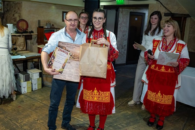 Празничната атмосфера бе изпълнена с настроение, усмивки и споделени емоции. Бяха отличени победителите в категорията „Най-добро домашно вино“, а кулминацията на вечерта настъпи с коронясването на Царя на виното за 2026 година. Титлата заслужено получи г-н Динко Влайков, който прие короната и се закле да я пази достойно до следващото издание на празника.