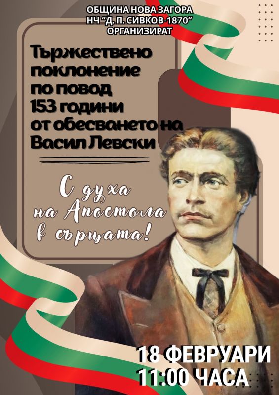 Община Нова Загора кани всички жители и гости на града да се присъединят към тържествената церемония, която ще се състои от 11:00 ч. пред паметника на Апостола. Там ще сведем глава пред неговата саможертва и ще си припомним заветите му, които и днес остават морален ориентир за поколенията.