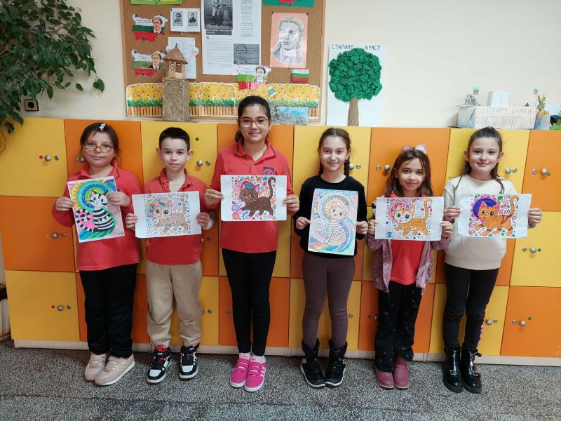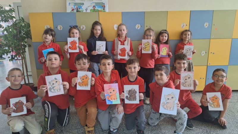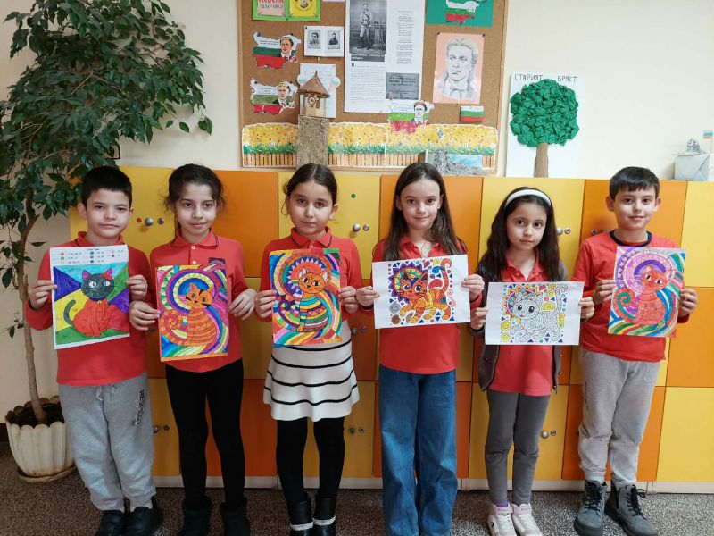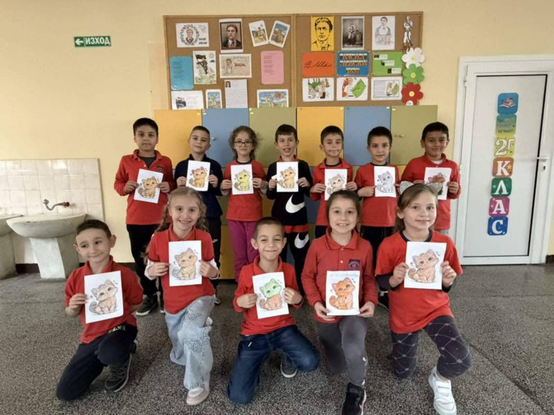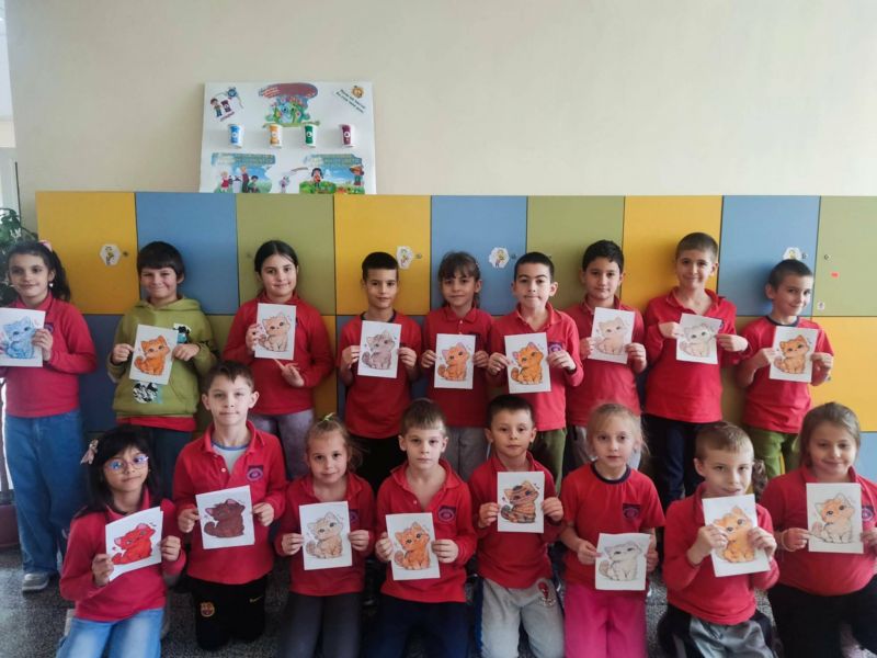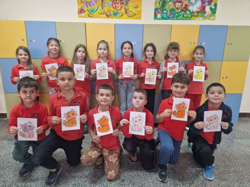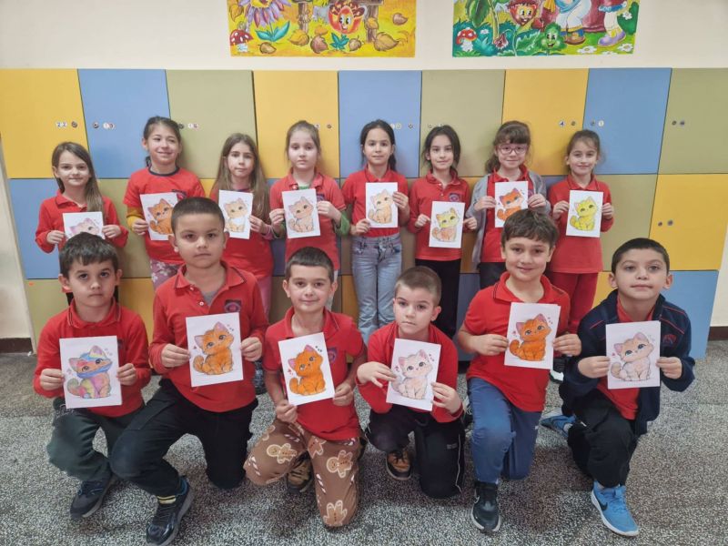 В инициативата активно се включиха и най-малките ученици от 1. и 2. клас, както и групите от ЦОУД към класовете, които изработиха рисунки, посветени на котките. Техните творби внесоха настроение и напомниха колко важни са грижата и съпричастността към животните.