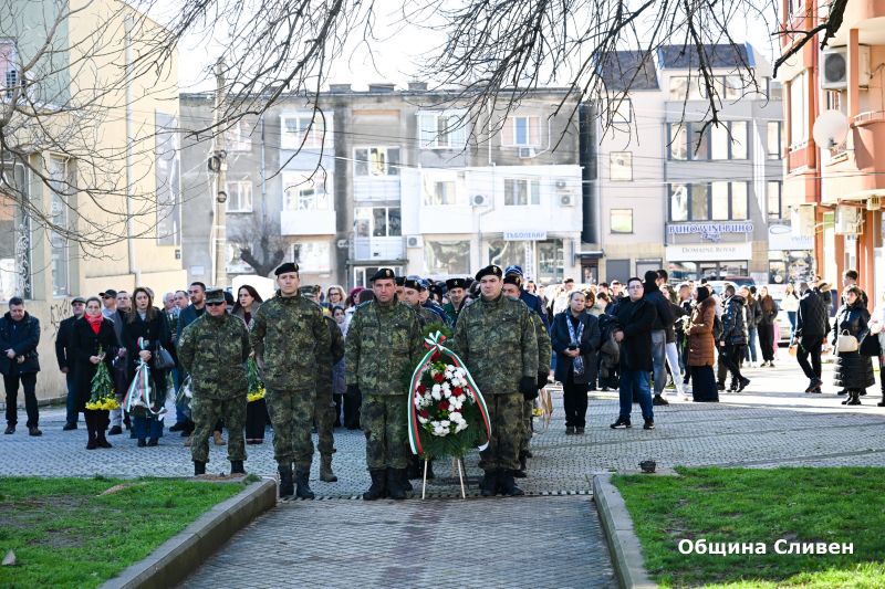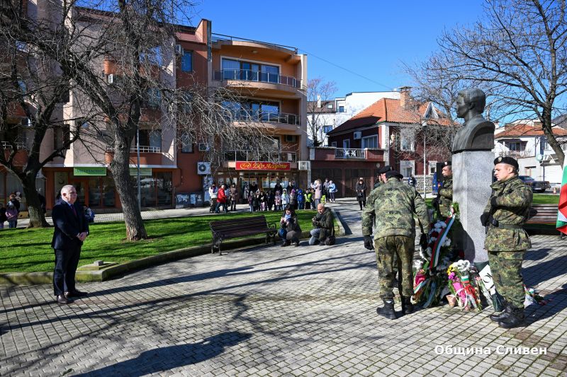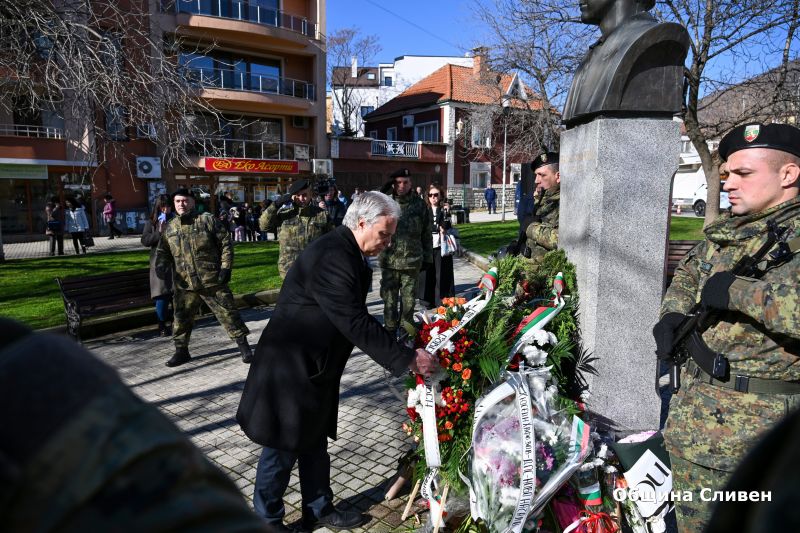 Цветя пред паметника поднесоха още ученици, директори и представители на институции, организации в Сливен, военно-патриотични съюзи и граждани.
