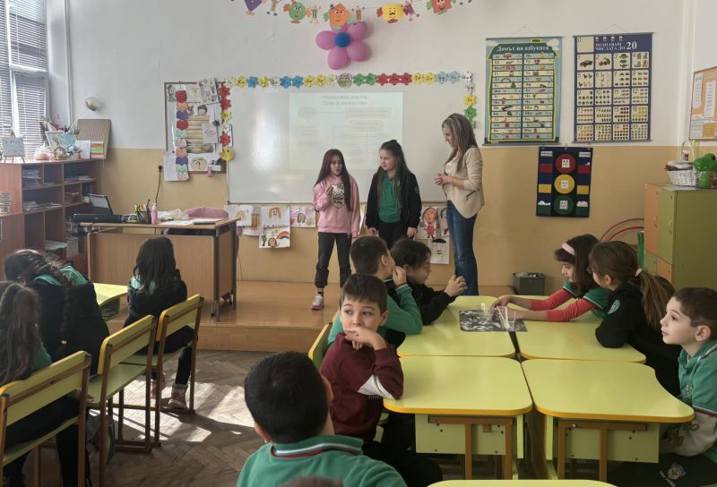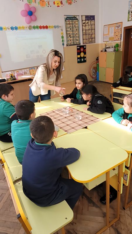 На занятието присъстваха учители от начален етап, ресурсен учител и училищен психолог, които с интерес наблюдаваха работата на младите изследователи.