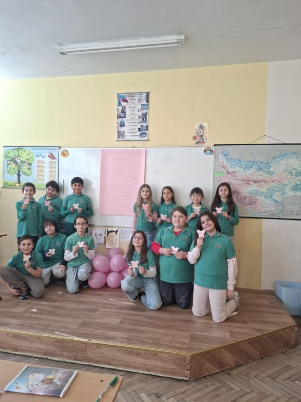 Учениците от Ученическия съвет сами изработиха и раздадоха розови фланелки с посланието на деня на всички свои съученици, за да напомнят, че училището ни е място на взаимно уважение, подкрепа и приятелство.
