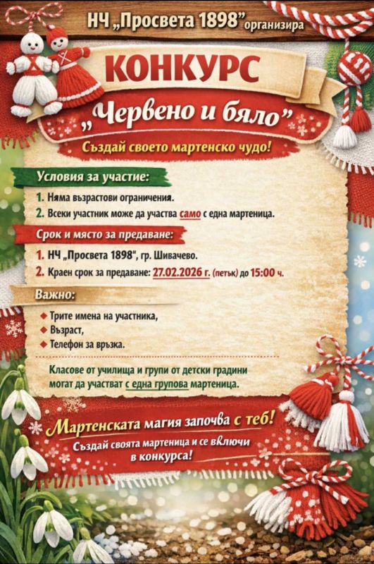 НЧ „Просвета 1898 г.“ – гр. Шивачево организира конкурс за изработка на мартеници под надслов „Червено и бяло“
