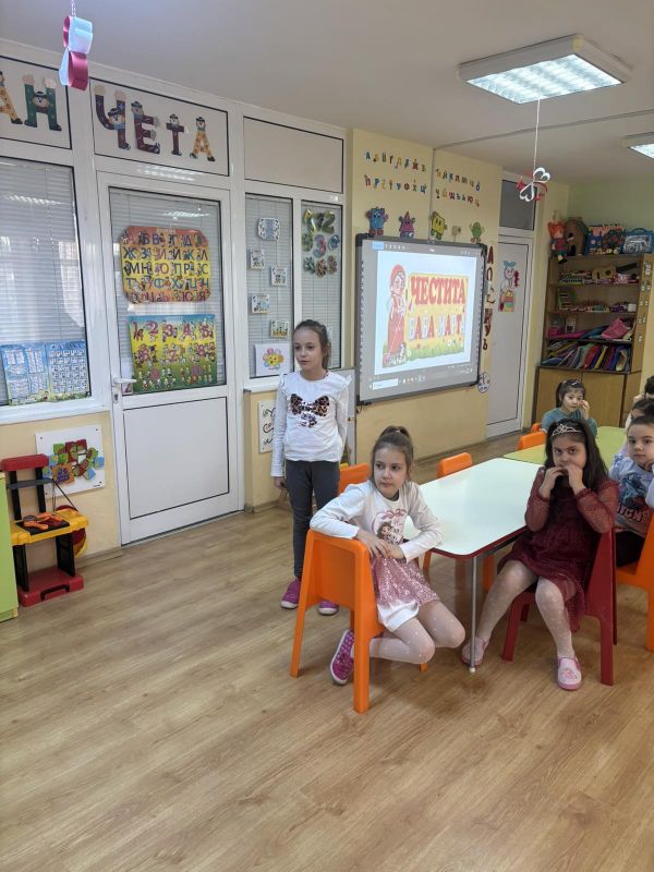 С много усмивки, трепет и блеснали очички децата посрещнаха белокосата гостенка. Тя им разказа за традицията на мартеницата, за силата на бялото и червеното и за пожеланията, които носи всеки малък конец. Децата с радост приеха своите мартенички и обещаха да ги носят с усмивка и добро сърце.