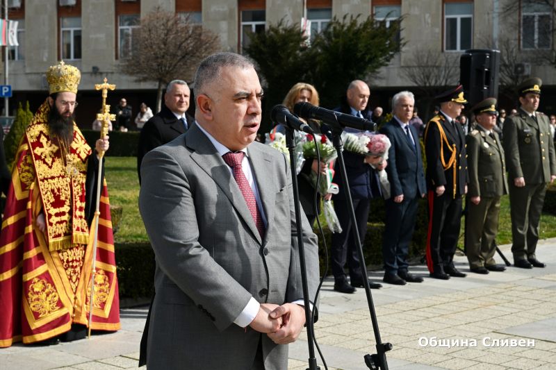 На Трети март – Деня на освобождението и Национален празник на Република България, в Сливен се проведе общоградска церемония. Проявата на площад „Хаджи Димитър“, събрала множество публика, започна с военен ритуал и издигане на националното знаме.
