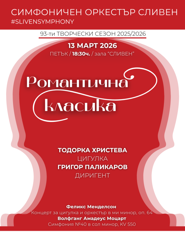 Пролетно вдъхновение на крилете на музиката готви Симфоничен оркестър - Сливен за своя мартенски концерт „Романтична класика“. Той ще се състои в петък, 13 март, от 18.30 ч. в зала „Сливен“.