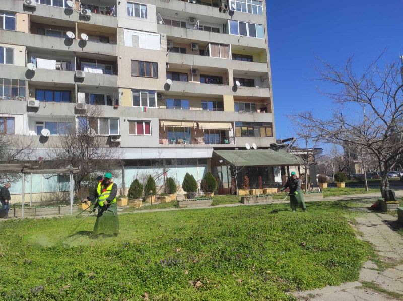Със затопляне на времето Общинското предприятие „Озеленяване и гробищни паркове“ в Сливен започна сезонното косене и обработка на зелените площи в града.