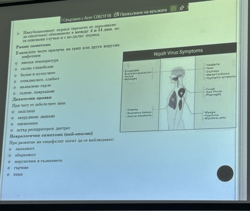 Представени бяха примери за такива заболявания като Западно Нилска треска, Чукунгуня, НИПА, ”Болест на хладилника”. Посочени бяха начините на заразяване, инкубационният период, симптомите и лечението. Разгледаха се и мерките за превенция, контрол и ролята на медицината и науката в борбата с тези заболявания.